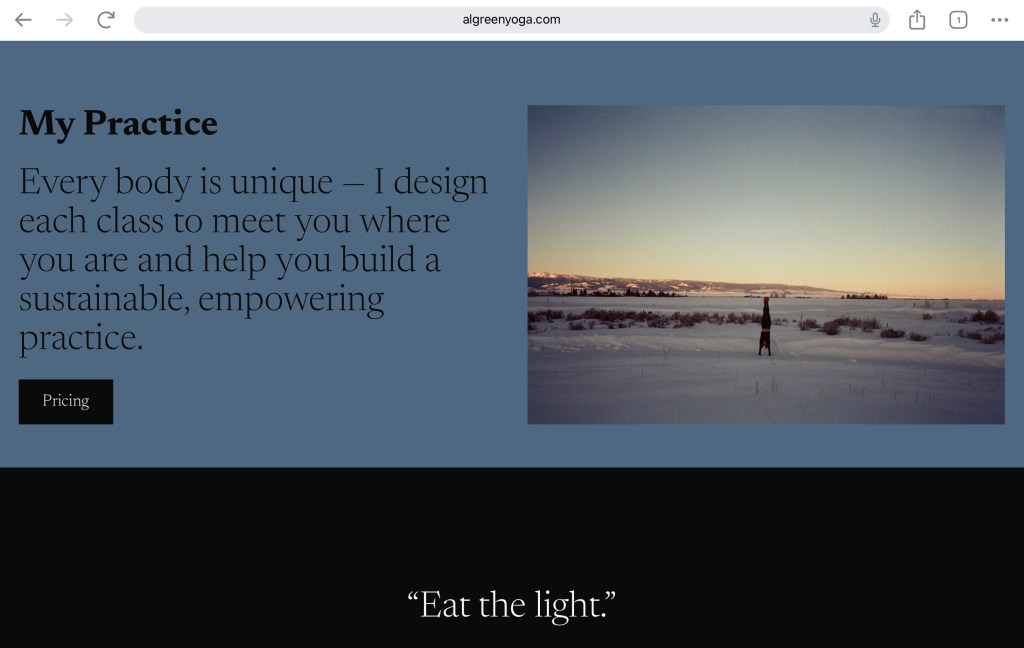 Web design, content development, brand curation and photography for AL GREEN Yoga in New York City.